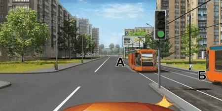 Вам надо повернуть, но надо ли кого-то пропускать? Вы планируете повернуть направо, но там два трамвая едут по двум полосам рельс. Можете ли вы повернуть сразу же или должны пропустить...