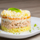 Лучше всего собирать этот салат в кулинарном кольце Самый популярный, «народный» вариант «Мимозы» состоит из картошки, лука, яиц, моркови и рыбных консервов...