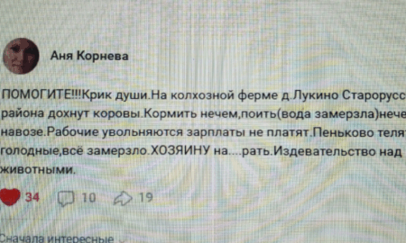 Жалоба на скотское отношение к крупнорогатому скоту в Старорусском районе поступила от местных жителей 14 января в местных соцсетях появилось сообщение от...