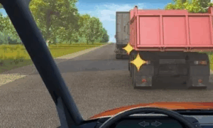 Разрешён ли вам тут манёвр? Вы проезжаете мимо отмены знака «Обгон запрещён». Хотите обогнать, но перед вами грузовик тоже пошёл на обгон. Можно ли вам начинать манёвр?...