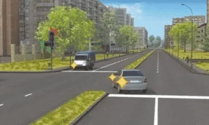 В этом задании просто так не разберёшься Вы хотите повернуть направо через трамвайные пути, но через них проезжает сразу два трамвая с разных сторон. А ещё поворачивает налево...
