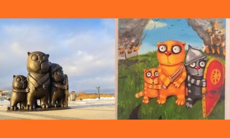 В областном центре установили памятник картине живописца «Три кота с деревянной сабелькой» Статуя скульптора Алексей Степаненко, известного по памятнику Гавриилу Державину, радует...