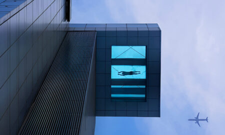 Идёт работа на кровле здания.