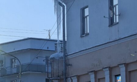 Чей-то срок висит: новгородцы пожаловались на огромную сосульку, висящую на углу жилого дома