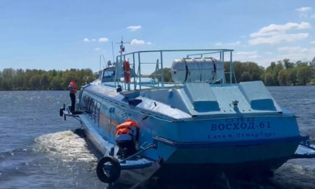В этом навигационном сезоне они использовали в качестве транспорта теплоход на подводных крыльях «Восход» Скоростное судно ходило по пригородному маршруту Великий Новгород...